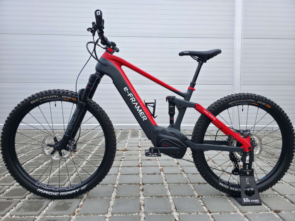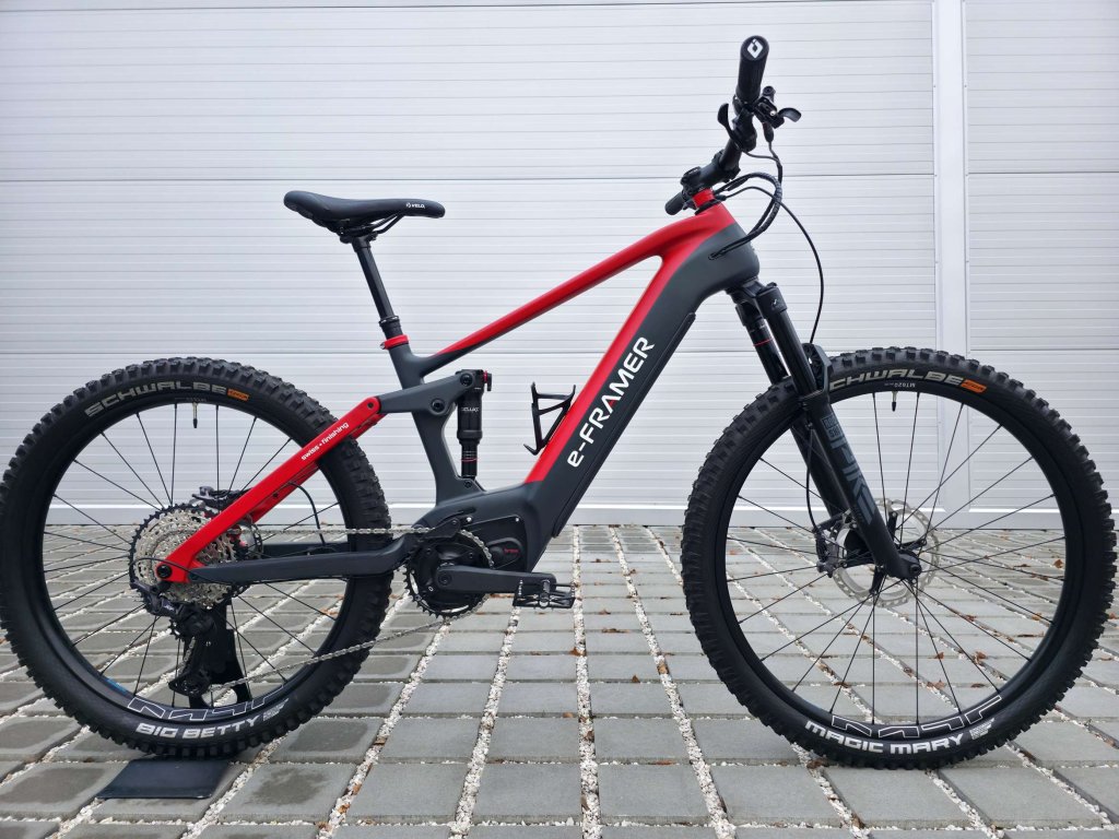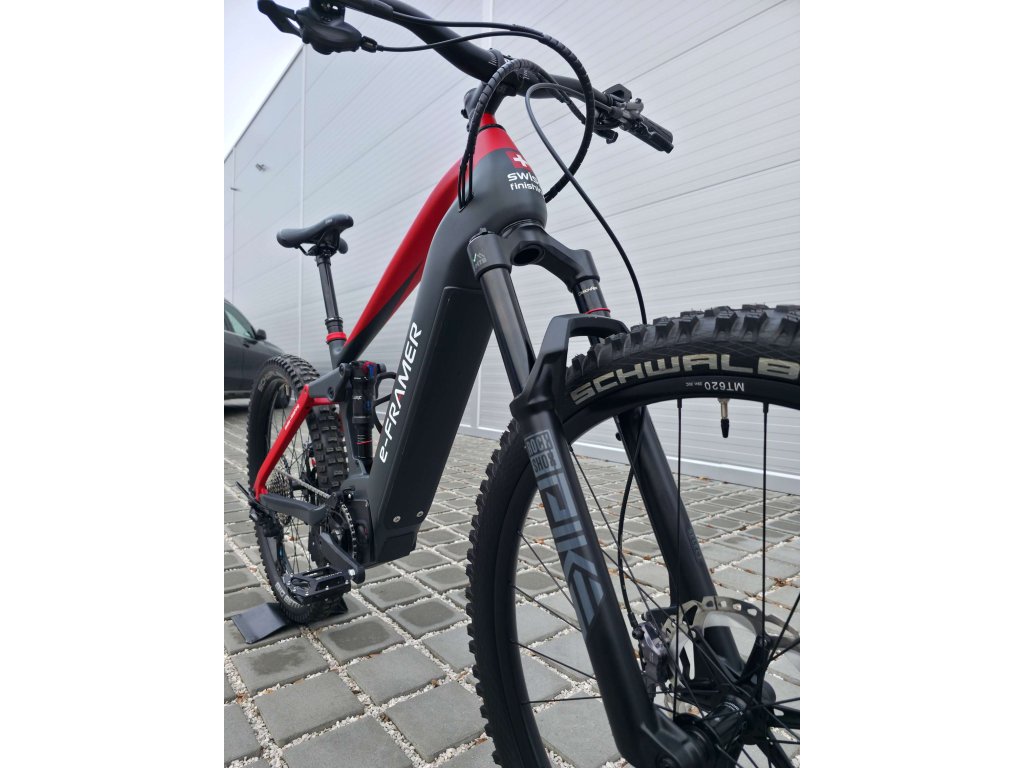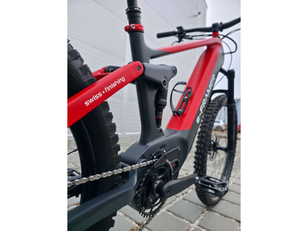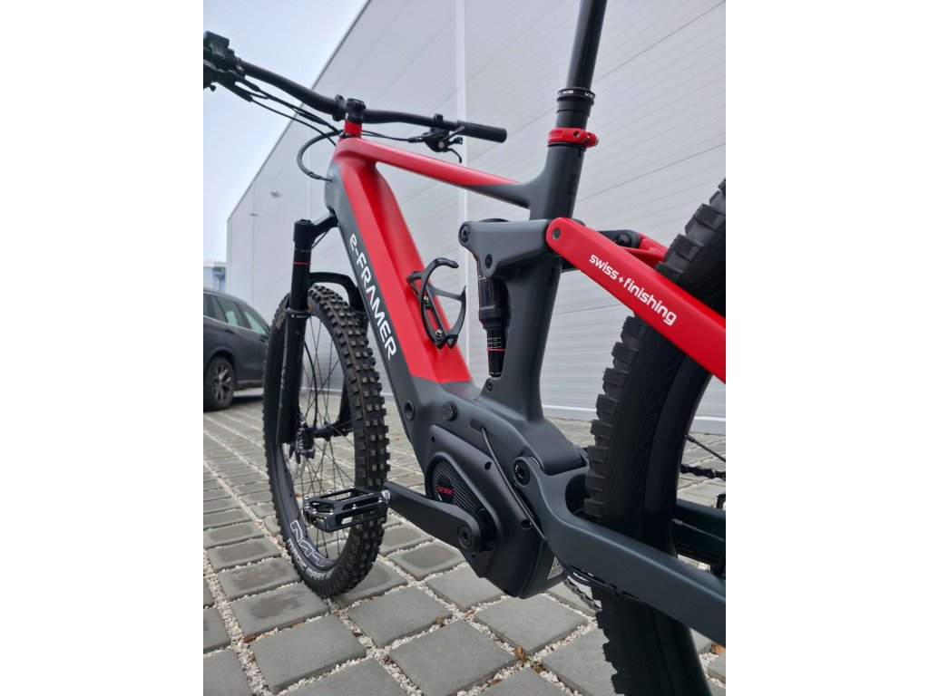 E-Framer Eiger je prémiové švýcarské full-suspension e-MTB s karbonovým rámem, navržené a ručně sestavené ve Švýcarsku s důrazem na špičkovou kvalitu, spolehlivost a výkon i v náročném terénu. Díky silnému a tichému motoru Brose Drive S-Mag (250 W, 90 Nm), dlouhé výdrži baterie (až kolem 140 km v režimu Eco), preciznímu odpružení a komponentům Shimano XT nabízí perfektní kombinaci ovladatelnosti, komfortu a sportovních schopností pro technické trailové výlety i dlouhé celodenní jízdy.