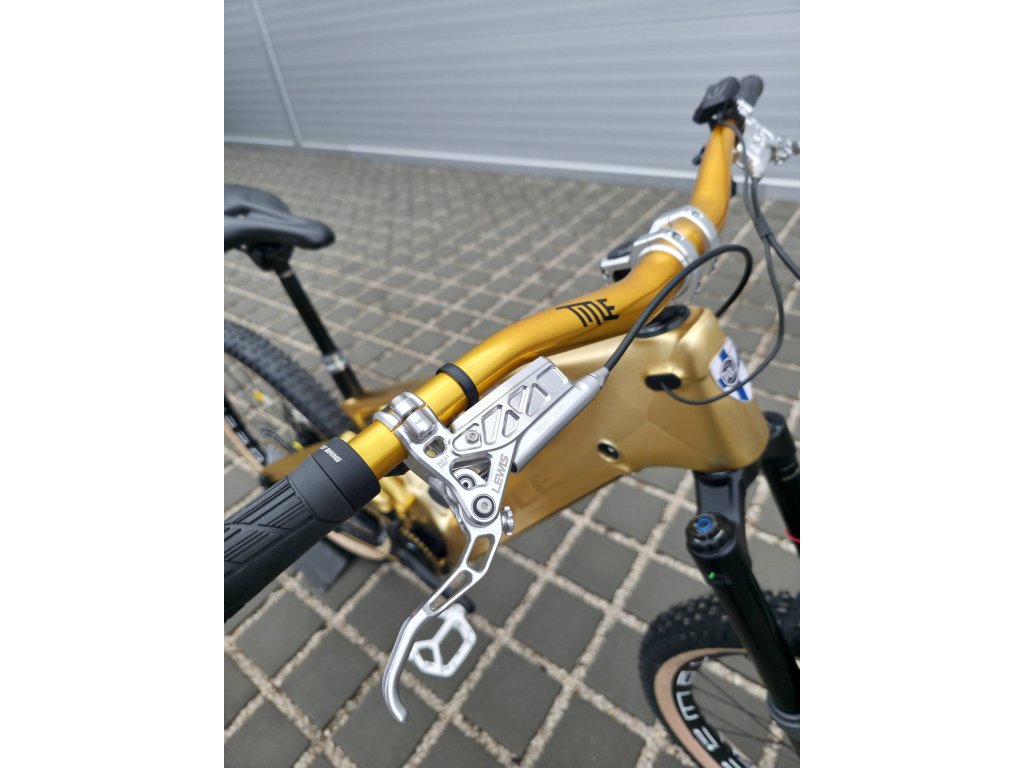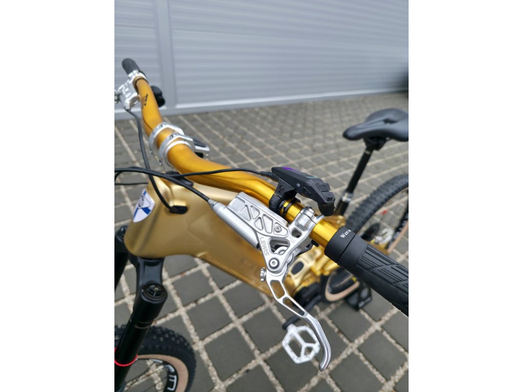 Na kole jsou nejsilnější brzdy na trhu Lewis EP6+, které se běžně montují jako upgrade i na elektrické motorky Surron a Talaria. 6 pístkové třmeny s obrovskými chlazenými deskami, masivní brzdové páky s velkým rezervoárem kapaliny a chlazené 220mm kotouče v peřdu a vzadu zajistí, že se Ti brzdy neunaví ani pokud jsi metráček a budeš kolo drtit třeba na sjezdu Alp. Nic výkonnějšího už na kolo dát nejde.
