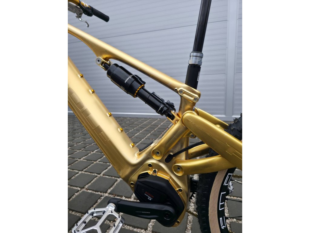 Kolo je kompletně zakázková stavba. Původní je pouze přední rámový trojúhelník a repasovaný tlumič, zbytek jsou všechno nové díly, včetně zadní stavby a všech ložisek. Na motoru je najeto testovacích 145km a baterie má celkem jen 8 cyklů.