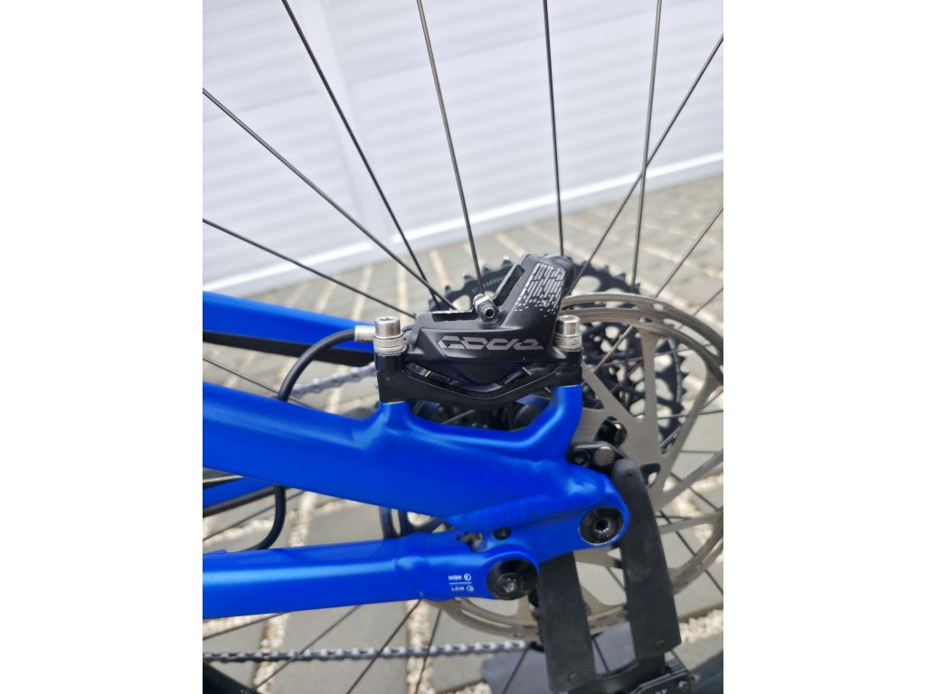 Hliníkový rám: Specialized M5 Alloy, 150 mm zdvih, nastavitelná geometrie, velikost S4 (L) na výšku 173-188cm)