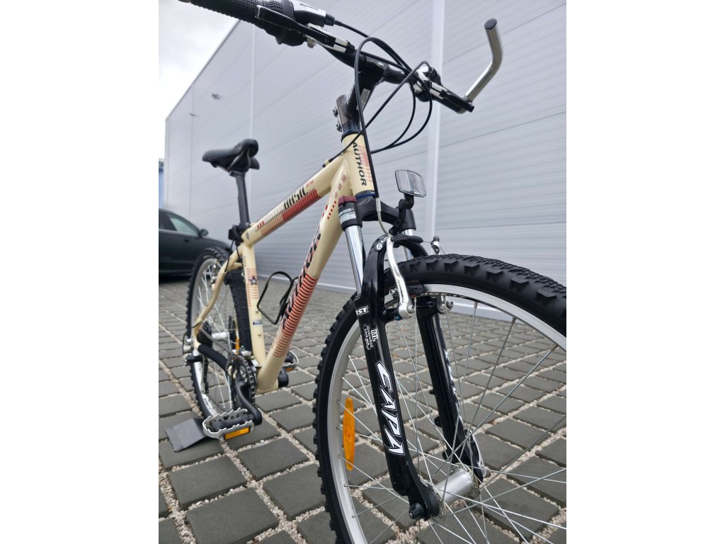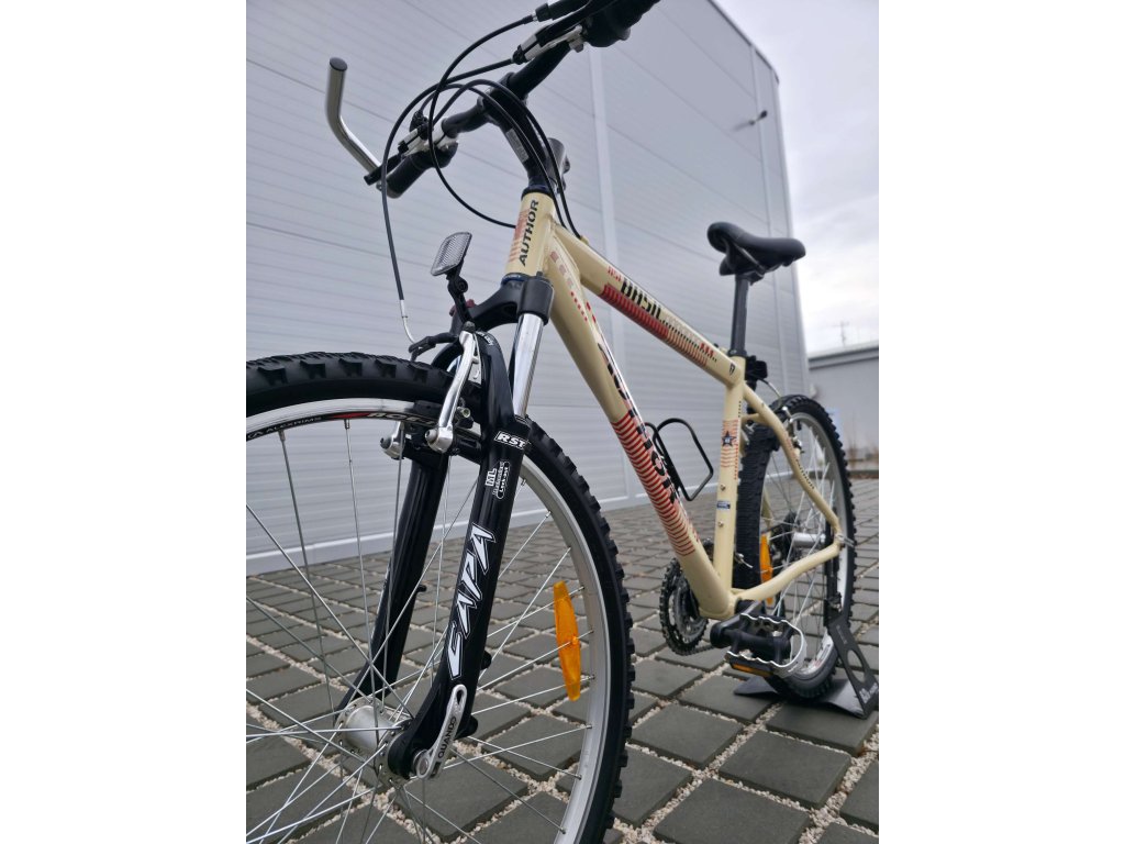 Author Basic ASL je postavený na robustním hliníkovém rámu s tvarovanými trubkami, na servis nenáročné sadě Shimano Alivio 3x7 s obrovským rozsahem převodů, odpružené uzamykatelné vidlici RST a na výkonných "véčkových" brzdách na které špalky stojí pár korun.