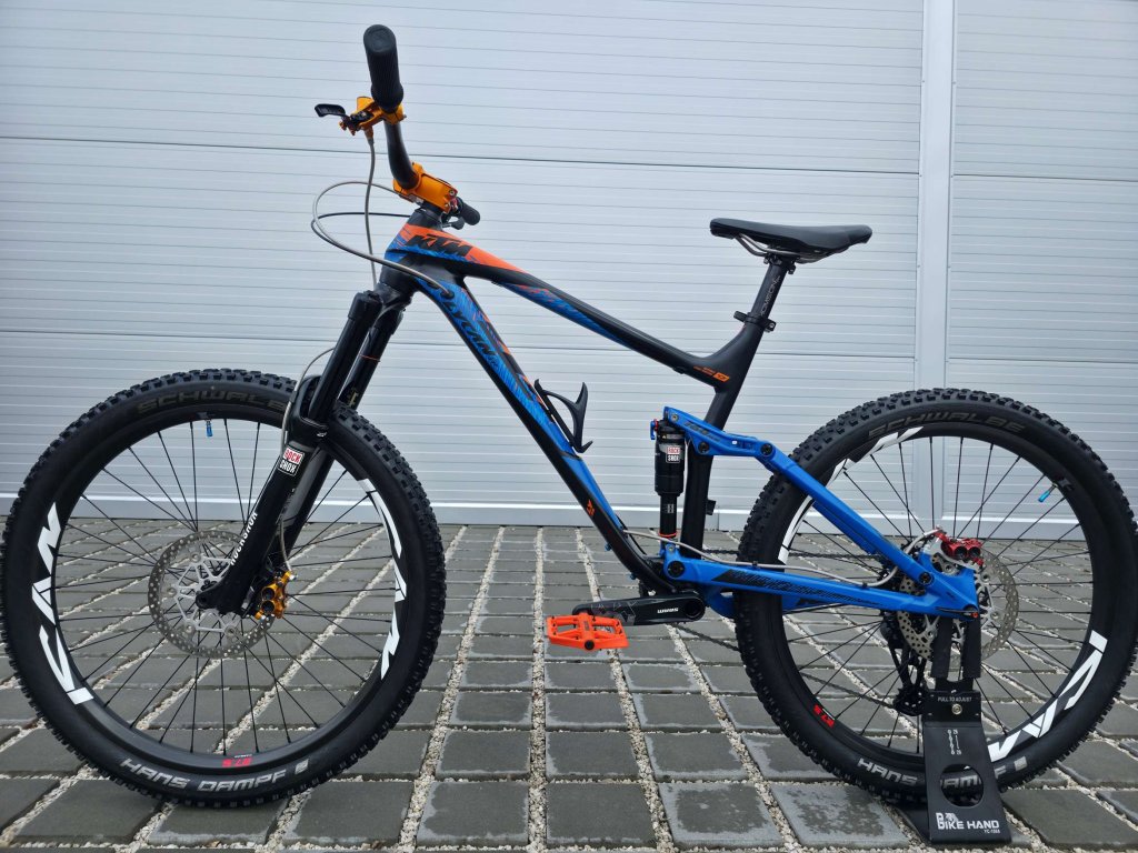 Hravé, lehké enduro na karbonových 27,5" kolech KTM se vzduchovým podvozkem RockShox s možností plného zamknutí tlumiče a přiškrcení komprese u vidlice díky kterým je kolo velice schopné i ve stoupáních a rychlých šlapavých pasážích.
