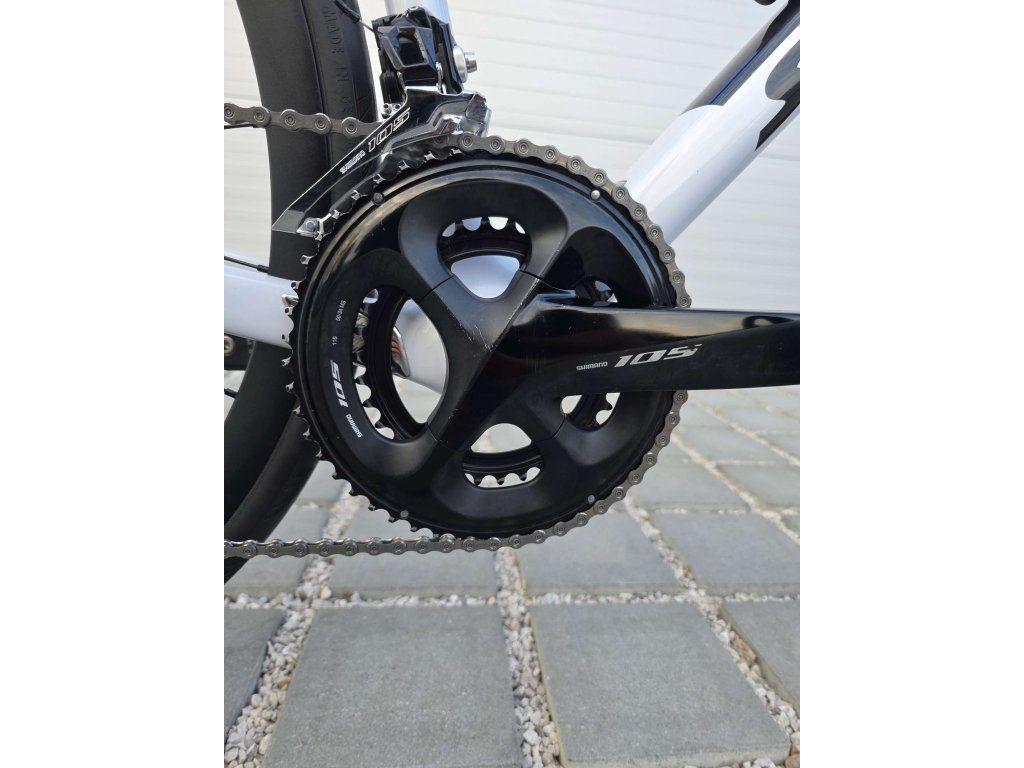 Osazení Shimano 105 přináší spolehlivý výkon a přesné řazení, takže se můžeš soustředit jen na jízdu. Geometrie je sportovní, ale pořád dostatečně vyvážená i na delší trasy – ideální kombinace pro svižné tréninky, hobby závody i rychlé víkendové vyjížďky.